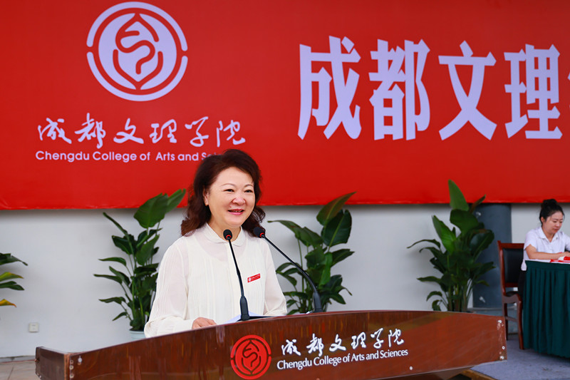 高华锦讲话。她表示,回首刚刚过去的军训时光,大家一定不会忘记,训练场上队列动作的反复操练,从凌乱到整齐所付出的艰辛努力,10公里拉练过程中,相互加油打气的温馨,教官们沙哑的嗓音、严厉的要求背后深藏的关怀与期望。这段经历,不仅是对大家身体的锤炼,更是对精神的洗礼,它让大家深刻理解了什么是令行禁止的纪律,什么是坚韧不拔的毅力,什么是团结协作的力量,什么是勇于担当的责任。这些宝贵的品质,必将成为你们踏入大学殿堂、开启人生新篇章的第一笔宝贵财富。她提出四点希望。一是希望大家将“令行禁止”的纪律观念,转化为“格物致知”的学术操守与严谨自律的生活态度,让铁的纪律融入血脉,成为我们行走大学、追求真理的隐形翅膀,助我们在知识的海洋中行稳致远;二是希望大家将“坚韧不拔”的顽强意志,升华为“迎难而上”的治学勇气与乐观豁达的人生品格,真正做到“锐气不减、朝气不散、勇气不褪”;三是希望大家将“团结协作”的集体精神,拓展为“和而不同”的交往智慧与互助共赢的成长格局,在集体中找准自己的位置,发挥独特的作用,实现个人与集体的共同成长;四是希望大家要将“勇于担当”的责任意识,内化为“家国情怀”的价值追求与奉献社会的使命自觉,勇于担当起时代赋予青年的历史使命,做一个有理想、有本领、有担当的奋进者、开拓者、奉献者。