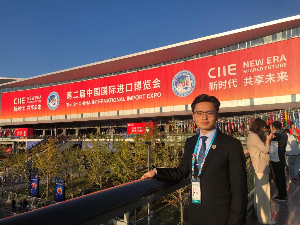 11月5日,第二届中国国际进口博览会在上海开幕,我校传媒与演艺学院大三学子、四川维数立方教育科技有限公司CMO吴尚明同四川省交易团赴上海参加。继第一届中国国际进口博览会签下350万元人民币大单之后,吴尚明与其创业团队再次在进口博览会现场同外方达成价值高达3500万元人民币的国际合作。