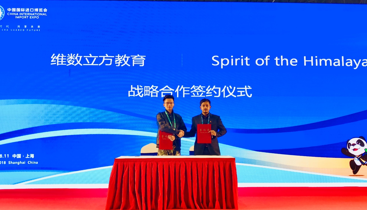 11月5日到10日,中国国际进口博览会在上海召开。我校传媒学院2017级播音主持专业学生、四川维数立方教育科技有限公司CMO吴尚明作为四川交易团交易代表,受邀参加首届中国国际进口博览会并现场与南美洲“Incine University”和尼泊尔“spirit of the Himalayas”就南美亚马逊森林生物多样性研究、火山科考、喜马拉雅山地质勘察等项目签约共计人民币350万元。