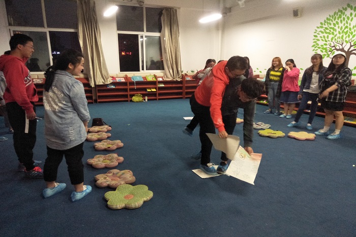 该活动邀请了一些志愿者来参加此次活动。该活动以做游戏为主,小组成员与志愿者一起进行了多个游戏,使志愿者在游戏中充分的放松心情,体验生活。游戏过程中的欢声笑语映视此次活动举办的圆满成功。活动结束后,中小学课程设计第七小组的成员通过志愿者对此次活动的感受和感想,以及举办该活动前后出现的一些问题进行了深入交流并进行总结。该小组成员一致认为此次活动虽然出现了许多问题,但整体上还是比较满意的,为以后类似的活动积累了经验。
