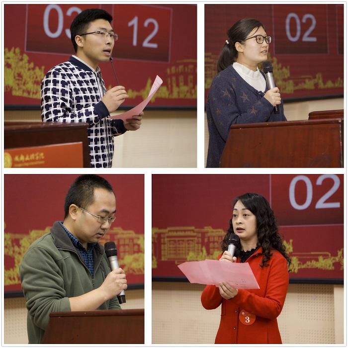 2018年3月28日8时30分,我校第五届辅导员职业能力大赛之学生辨识项目与案例分析项目决赛在学工部楼105先后举行。学校党委副书记骆云英,党委副书记、学生工作部部长王亚军,团委书记郑巍巍出席活动,各学院辅导员到场观摩学习。