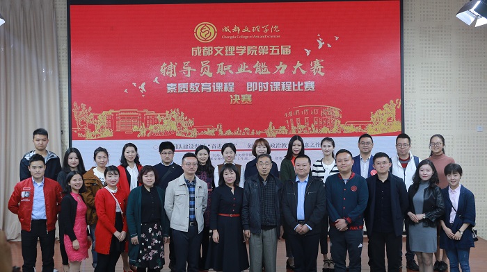 2018年3月27日8时30分,我校第五届辅导员职业能力大赛之即时课堂大赛决赛在学工部楼105顺利举行。成都文理学院党委副书记骆云英,党委副书记、学生工作部部长王亚军,院务委员、党委办公室主任卢元勇,各学院党总支书记,学工部、各学工办负责人出席了本次大赛,全体辅导员到场观摩学习。本次比赛由成都文理学院教学督导赖先朴教授,团委书记郑巍巍,党委办公室副主任古威,教务处副处长吴娟,学生工作部副部长刘原媛担任评委。