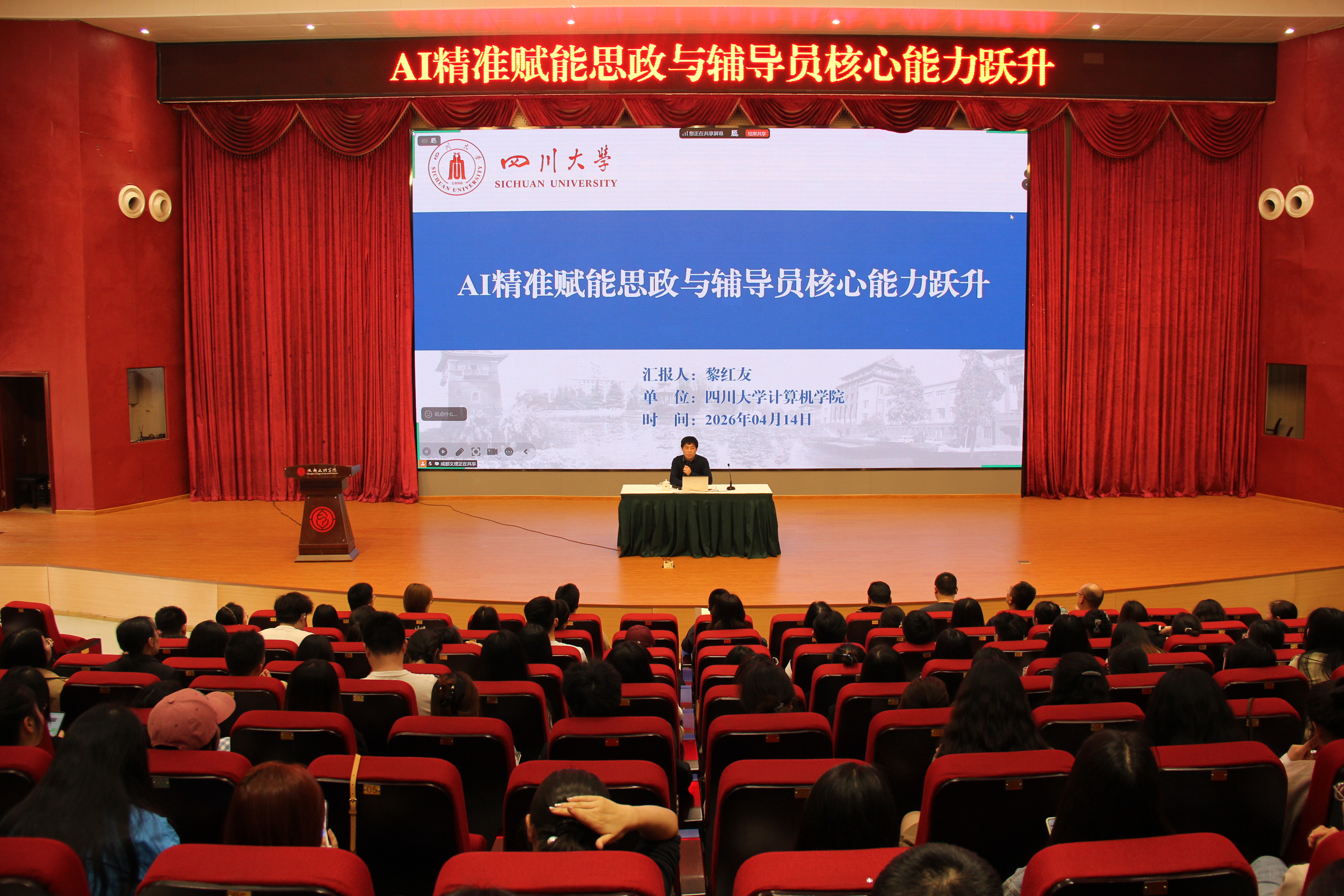 为主动适应人工智能技术赋能高校思想政治工作的新趋势,帮助学工系统教师掌握AI赋能思政工作的前沿理念与实践方法,推动我校学生工作提质增效,4月14日下午,学校特邀四川大学计算机学院黎红友副教授来校作“AI精准赋能思政与辅导员核心能力跃升”专题培训,学工系统全体教师参加。