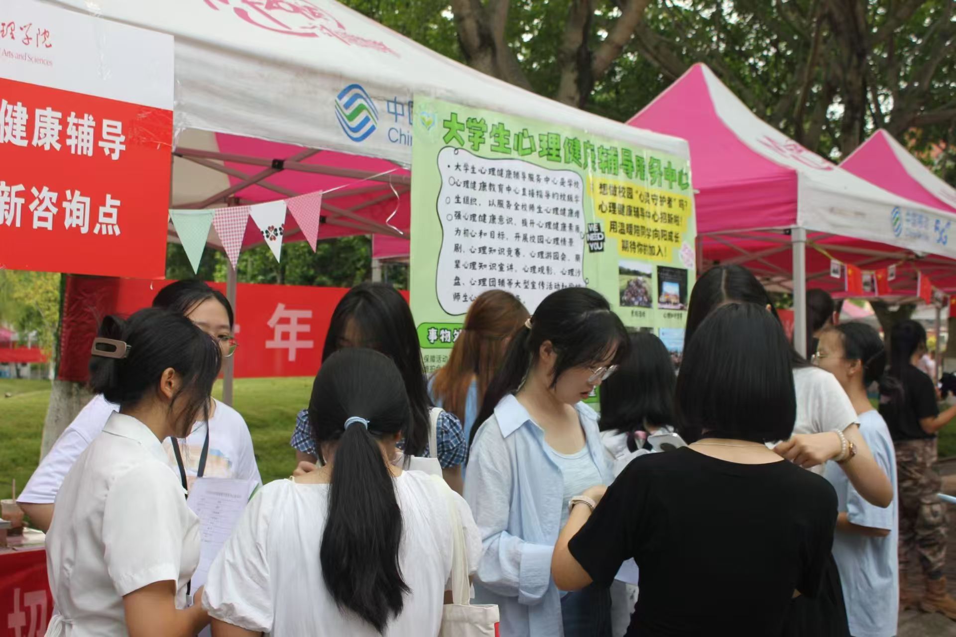 9月13日至14日,成都文理学院大学生心理健康教育中心于一食堂人工湖主干道组织开展新一届招新活动。