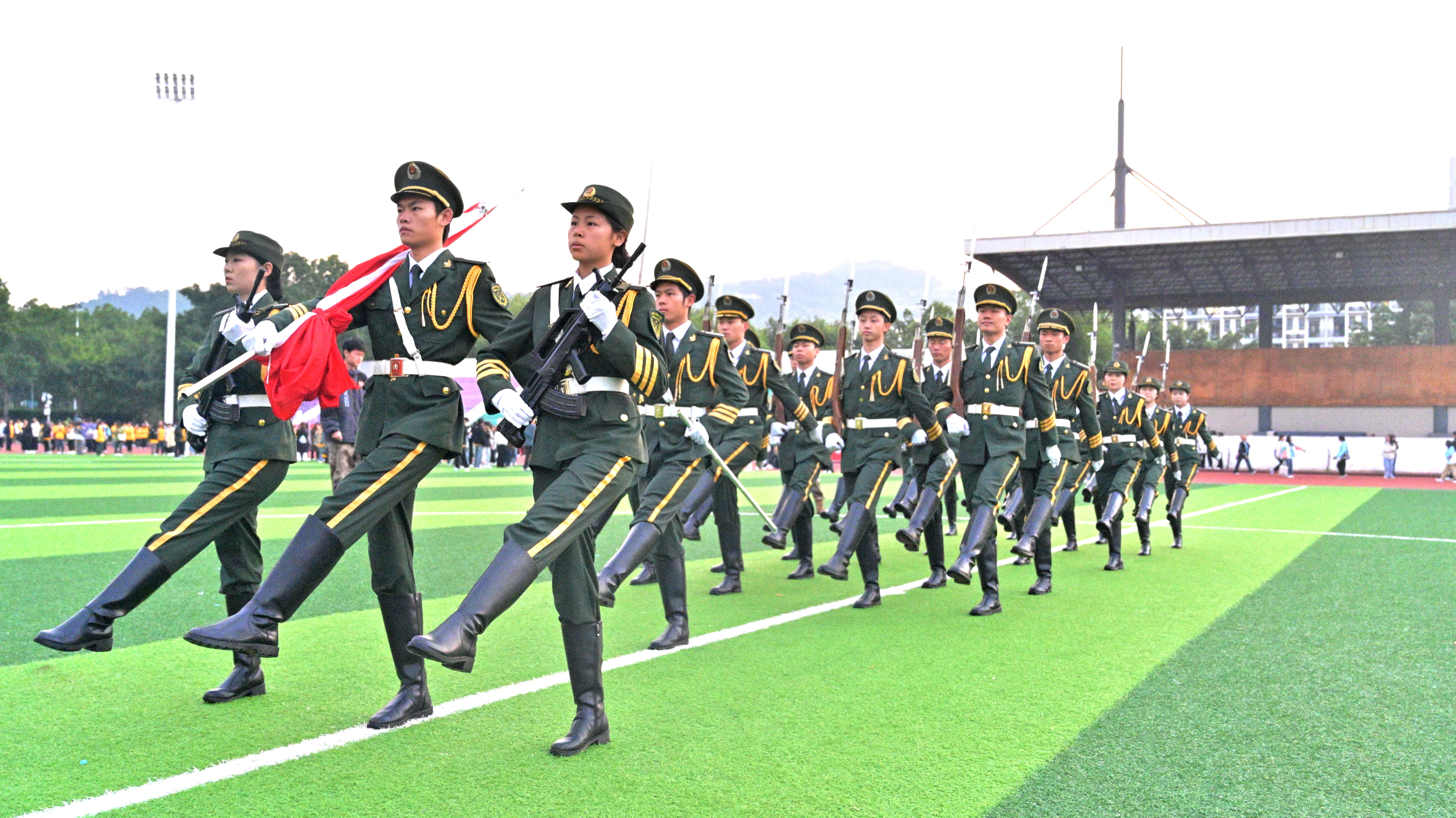 时分成都文理学院第二十一届师生运动会于第一运动场正式开幕国旗护卫队顺利完成开幕式的出旗任务暨定点升旗仪式。参与此次任务的有国旗护卫队级干部及四十余名级队员。时许国护队员已在操场准备就绪严阵以待。时分运
