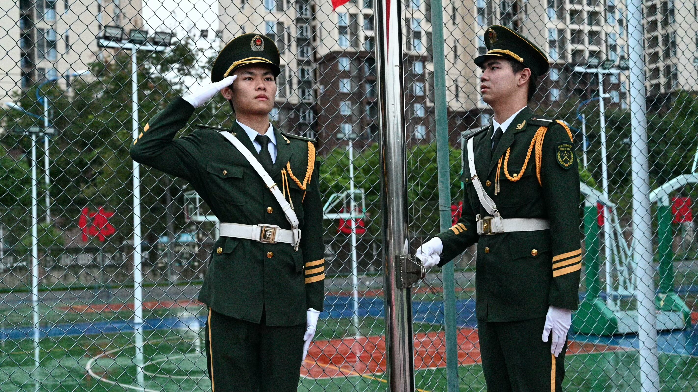 时分国旗护卫队级预备队员于操场集合进行队列动作考核。本场考核由作训部干部下达口令并打分办公室干部在队列中考察队规队纪背诵情况其余干部负责引导、拍照记录和维持秩序。考核主要分为军姿、单兵动作、齐步与正步