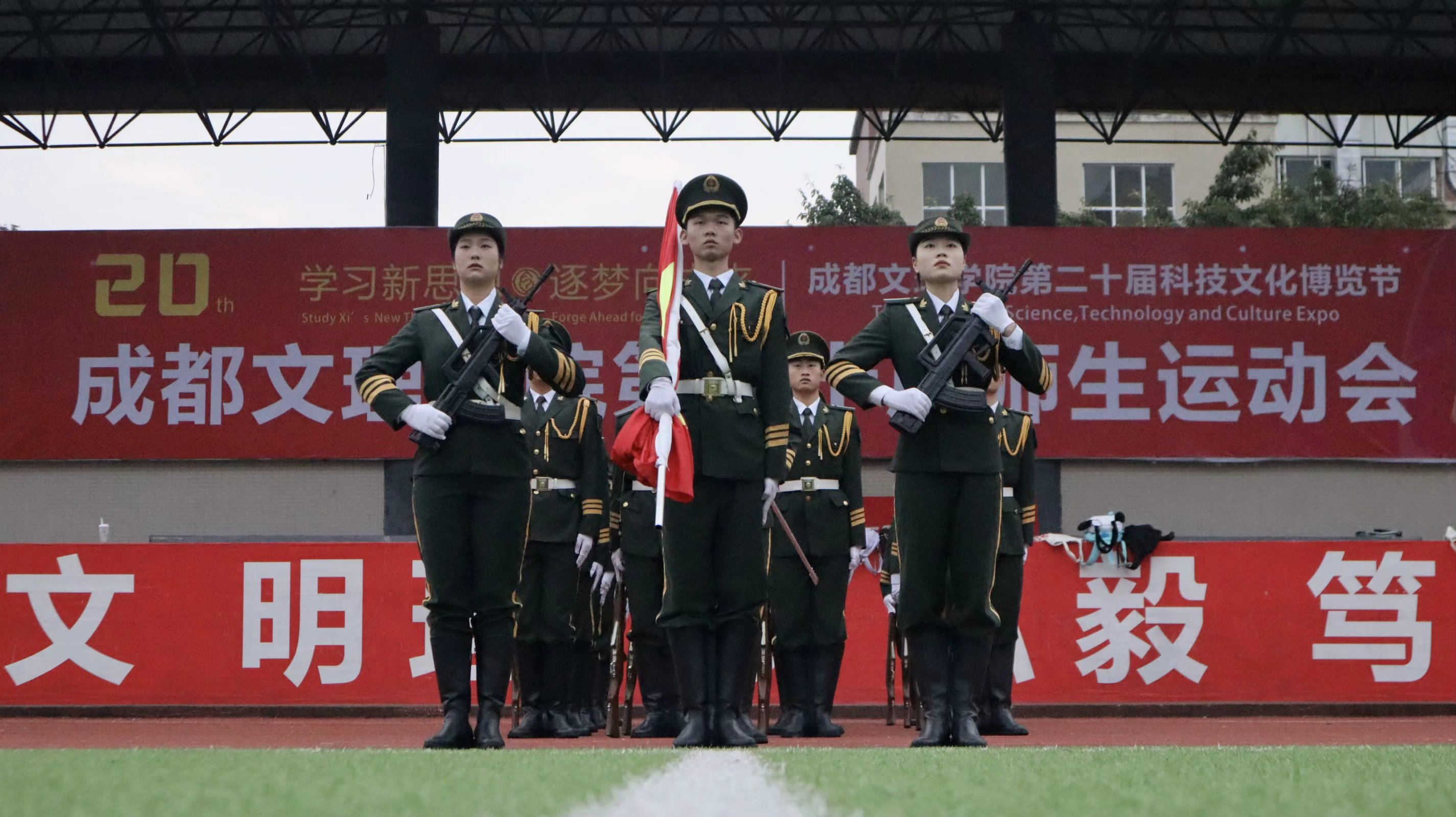 时分成都文理学院第二十届师生运动会于第一运动场正式开幕国旗护卫队顺利完成开幕式的出旗任务暨定点升旗仪式。参与此次任务的有国旗护卫队级、级干部及四十余名级预备队员。时许预备队员已在操场准备就绪严阵以待。