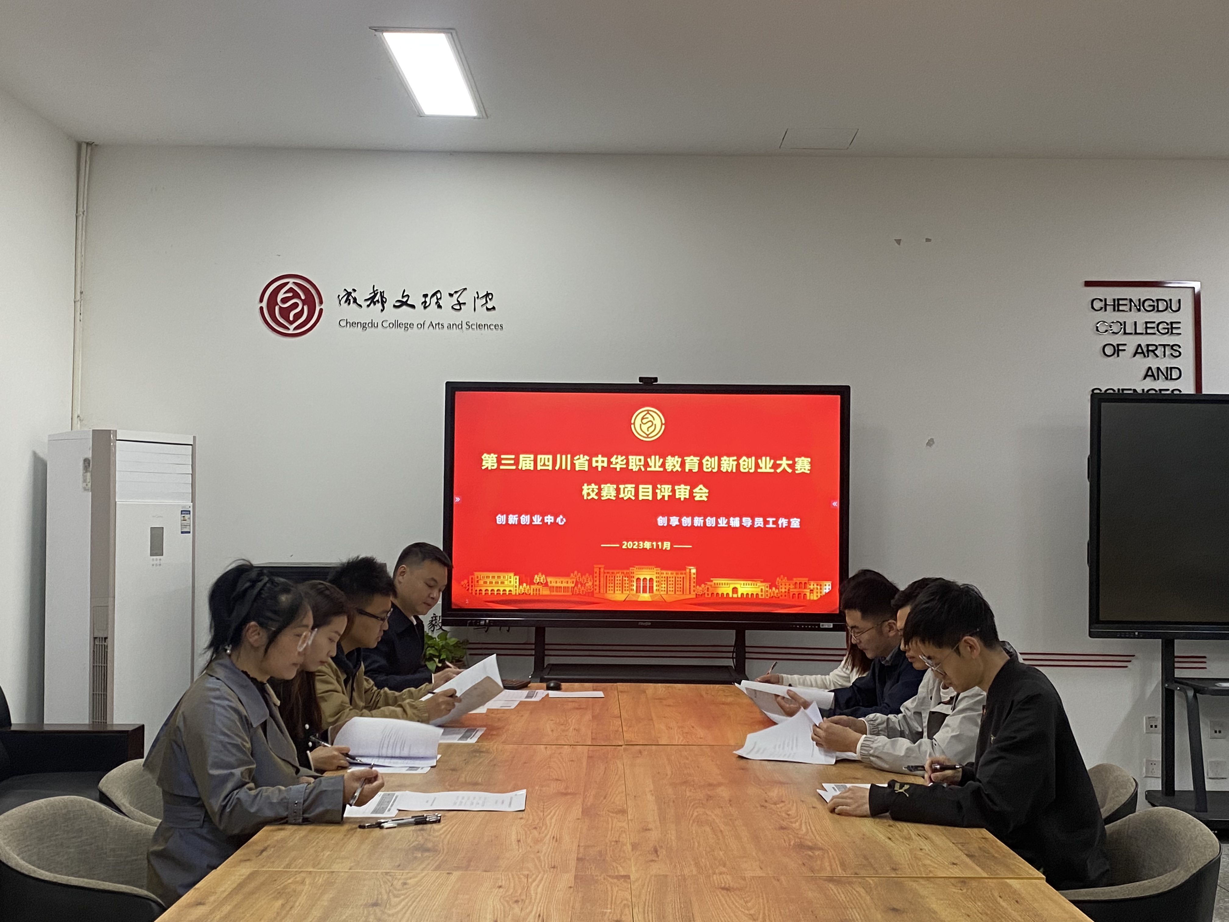 下午时在招生就业办公室召开了第三届四川省中华职业教育创新创业大赛校赛项目评审会暨成都文理学院创新创业工作交流会。招生就业办公室、创新创业中心许夏、创享创新创业指导工作室全体成员参加了本次会议。各位老师