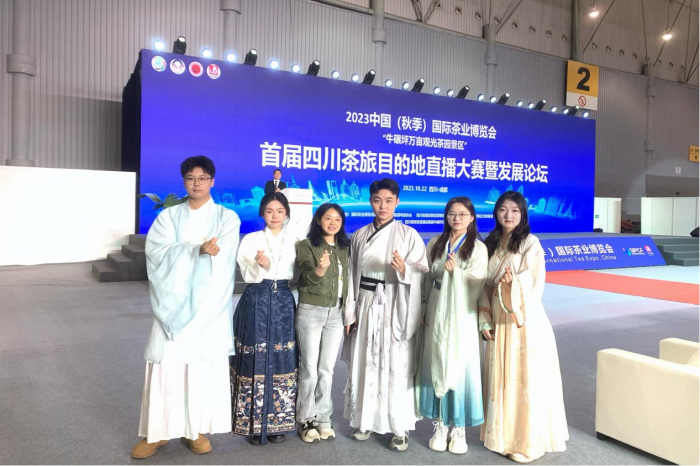 由中国成都国际茶业博览会组委会、四川省旅游景区管理协会教育专委会、成都旅游导游协会主办的首届四川茶旅目的地直播大赛在世纪城新会展中心举行。经济管理学院旅游管理专业唐富森、李沁泽、曾丽、王佳、母玉琴五位
