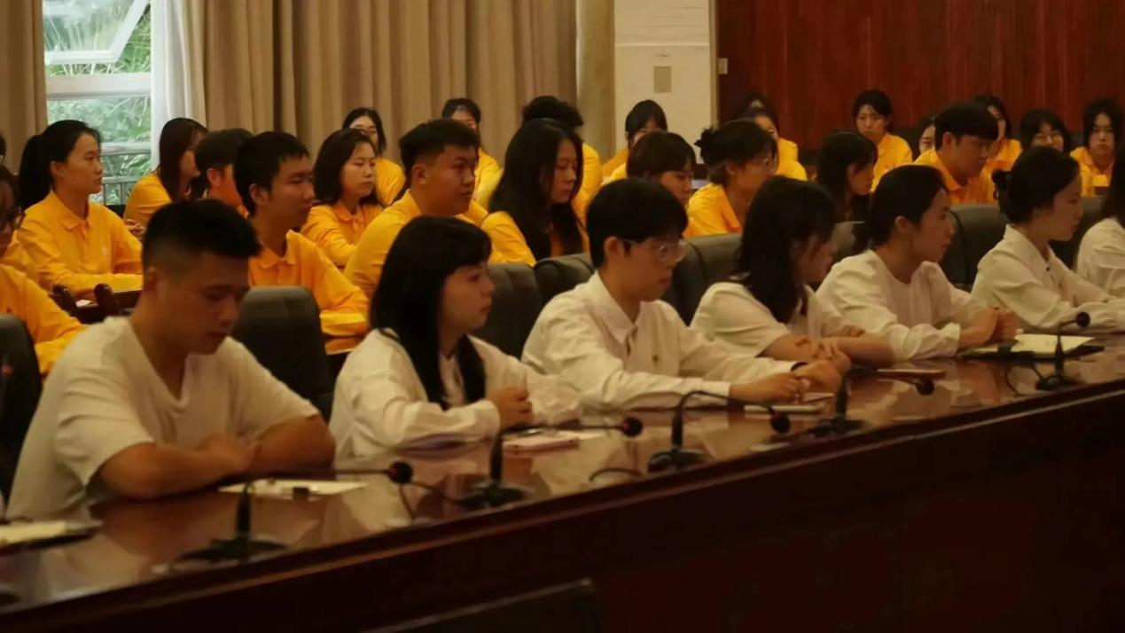 为践行高端化国际化个性化的办学理念培养具有国际视野能够担当民族复兴重任的新时代青年时分文法学院于学工部会议室举行校园大使选拔初赛。文法学院党总织书记陆明烨文法学院党总支部副书记兼学工办主任李明昌及文法