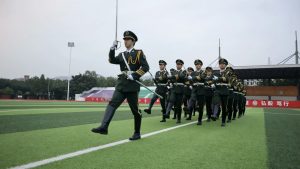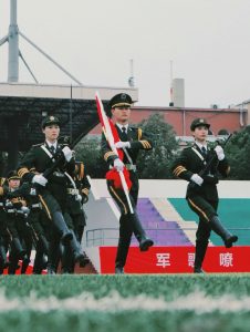 时分成都文理学院国旗护卫队于操场举行第八周例行升旗仪式。外国语学院和会计学院领导、全体辅导员、级学生及国旗护卫队全体队员参与本次升旗仪式。时许升旗队列在主席台前集合完毕其余队员于旗台两侧军姿立定等待升