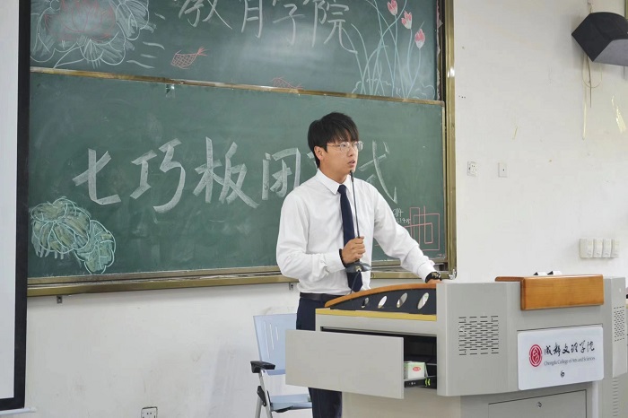 时分教育学院于主教学楼栋教室举行第六届七巧板学生干部成长计划闭幕式参加此次闭幕式的主要人员有教育学院分团委书记杨一康、分团委副书记兼办公室主任黄颖、学生分会主席刘亚凤、学生分会主席王思颖、全媒体中心主