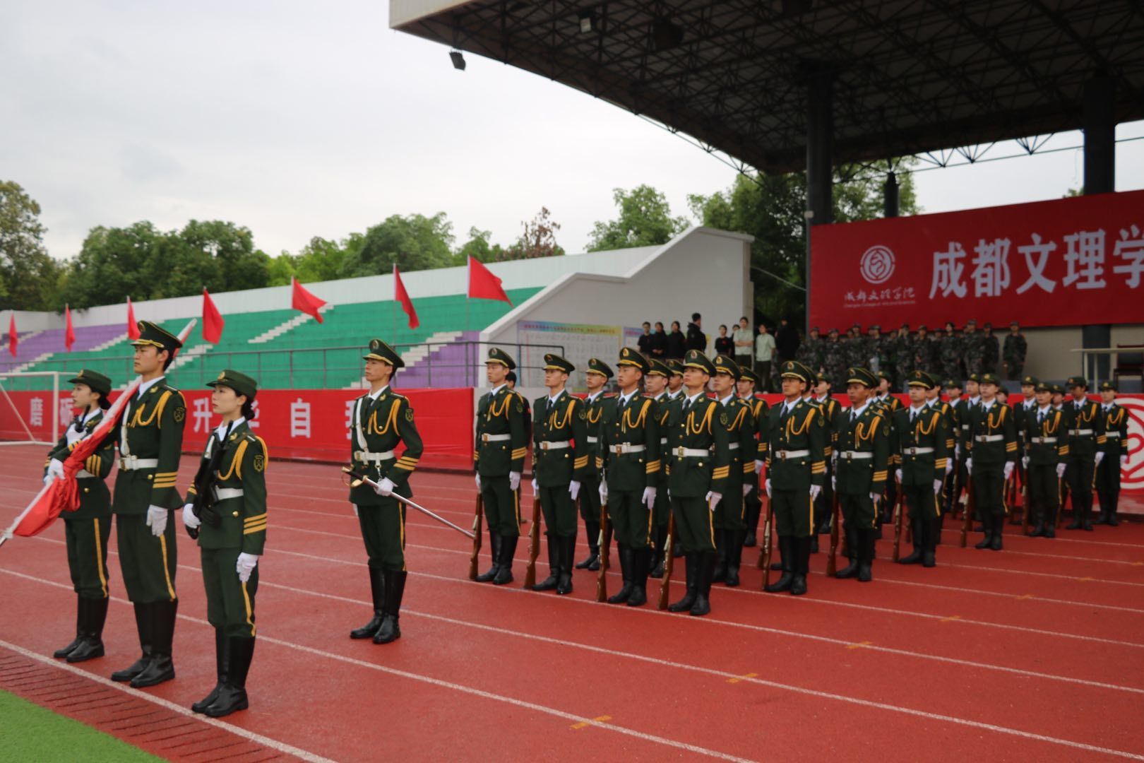 时成都文理学院于操场举行第十二周例行升旗仪式。级全体师生和国旗护卫队全体队员参与本次升旗仪式。时分全体师生和国旗护卫队队员们在操场集合完毕等待升旗。时许升旗仪式正式开始。升旗队列带着肃然的神情踏着坚定