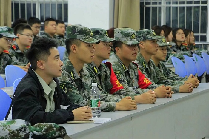 下午时分成都文理学院九营连的全体同学集中观看了成都文理学院国防教育主题讲座。通过观看学习同学们纷纷表示生逢其时重任在肩梁启超先生曾说:故今日之责任不在他人而全在我少年。少年智则国智少年富则国富少年强则