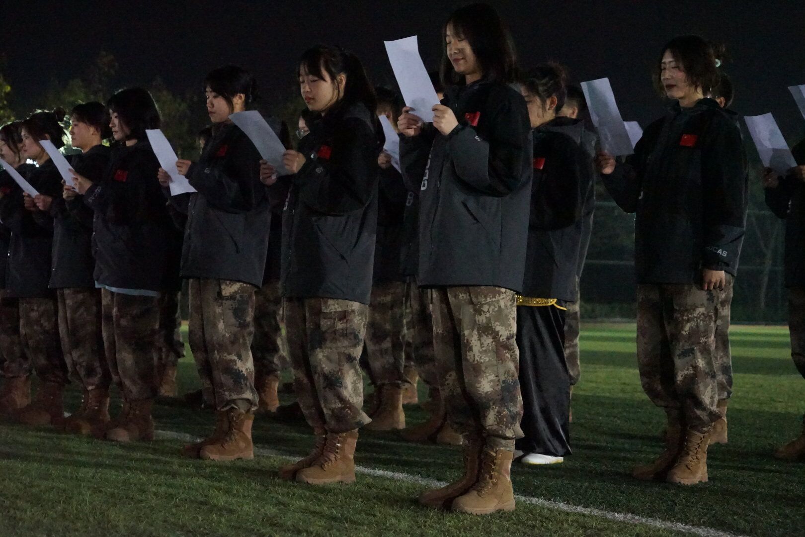 时分成都文理学院于操场举行第七周例行升旗仪式。文法学院领导、全体辅导员、级学生及国旗护卫队队员参与本次升旗仪式。时许全体师生和国旗护卫队员们在旗台前集合完毕等待升旗。时分升旗仪式正式开始。升旗队列队员