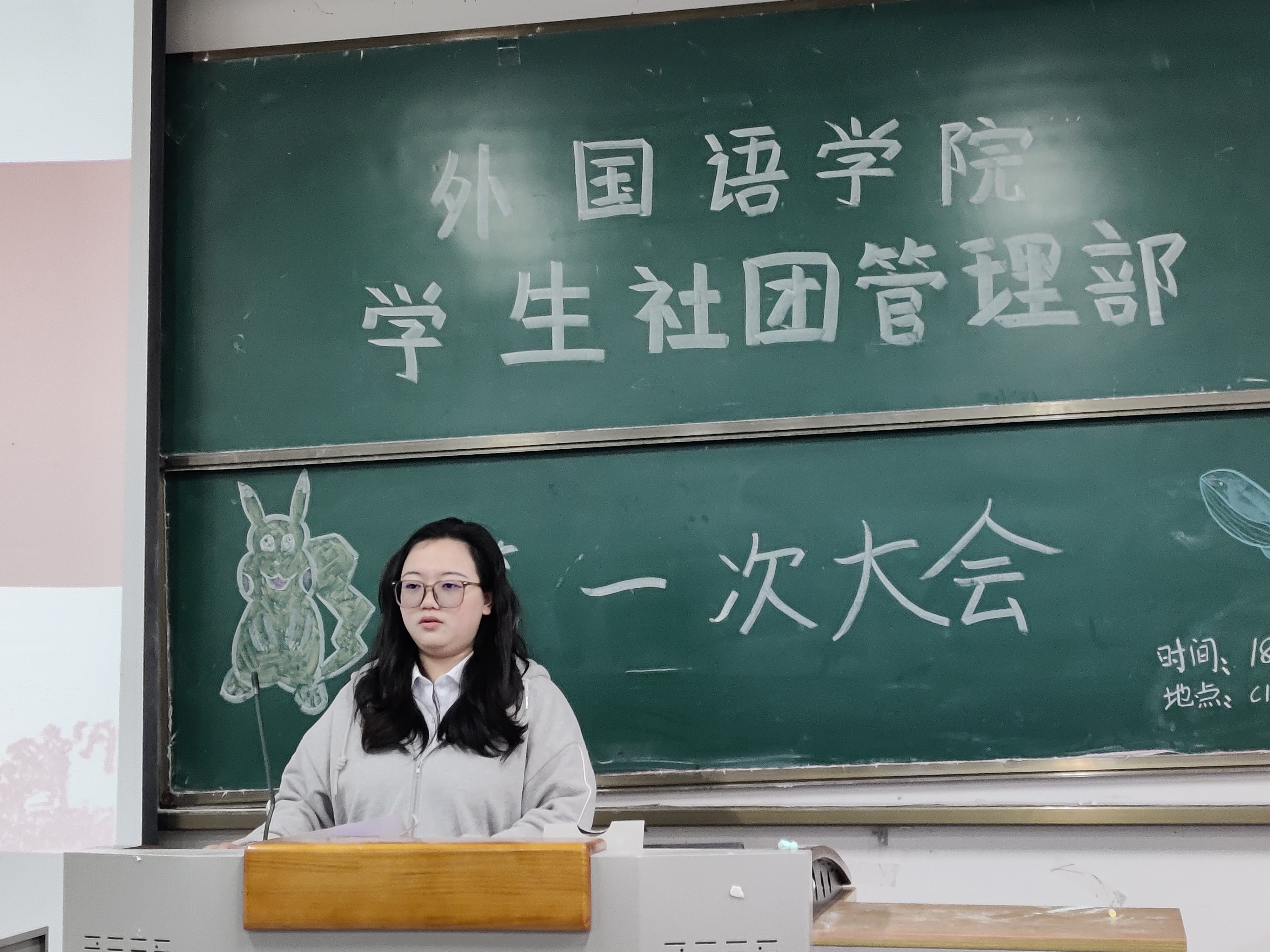 时分外国语学院团委学生社团管理部学年度第二学期第一次例会于主教学楼栋教室举行。外国语学院外社管指导老师余慧萍、外社管全体成员出席本次会议。会议伊始主持人宣读会场纪律简述会议流程。会议第一项由办公室副部
