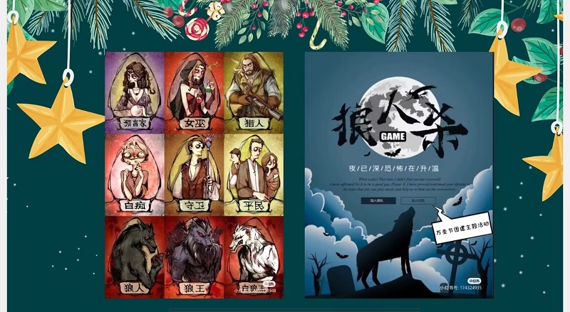 我社举行了本学期第三次活动:桌面思维风暴活动这次桌面思维风暴活动我们分为两天多组同时进行。此次的狼人杀活动中由主持人宣读本次活动规则人为一组进行活动。每组中有三位狼人狼人为单独阵营其余为一个阵营狼人将