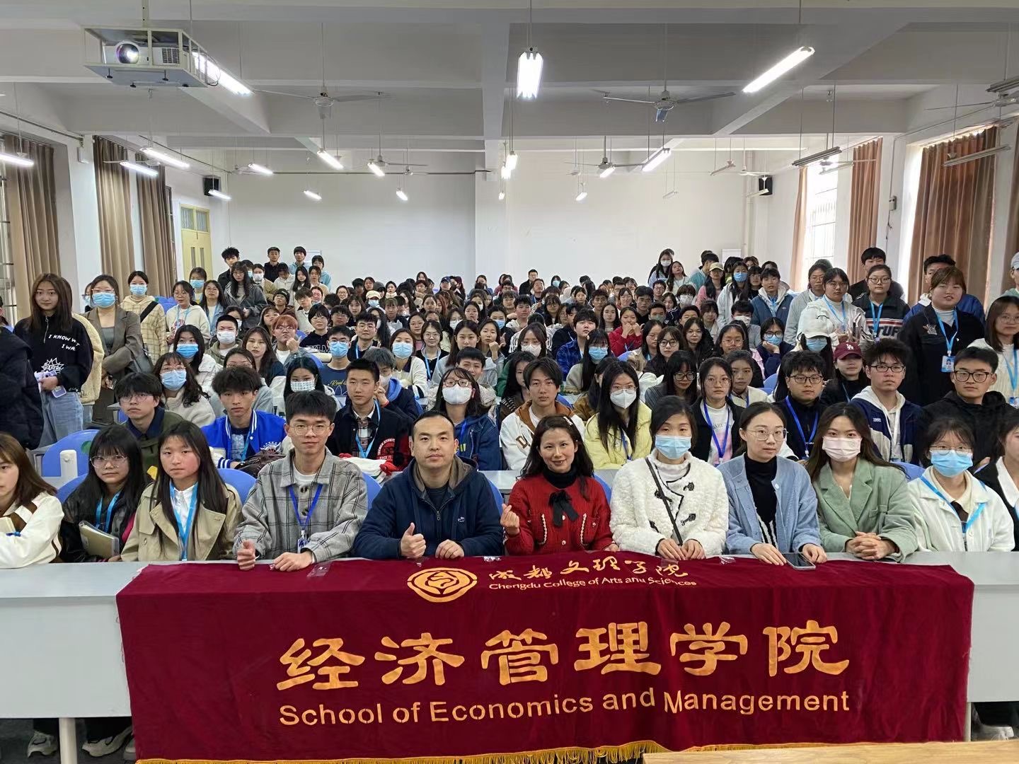 至日成都文理学院于第一运动场举办第十九届师生运动会。经济管理学院分团委书记陈实及学生会常委亲自部署本次参赛工作学生干部与运动员们通力合作以饱满的热情锐意进取积极参与此次运动会。运动会开幕式上经济管理学
