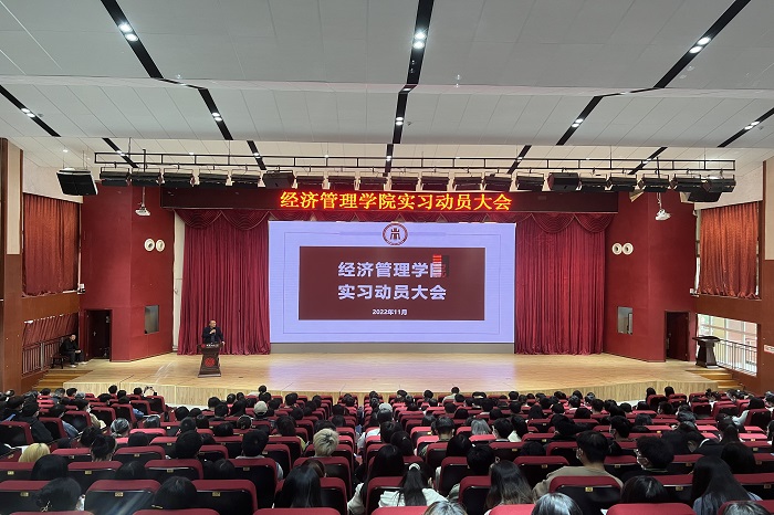 时经济管理学院于文理讲堂召开届毕业实习动员大会。经济管理学院副院长李瑞强、党总支书记李江、毕业班辅导员、教师代表吴晓曦以及届全体毕业生出席此次动员大会。首先李瑞强副院长做了动员讲话。他强调实习是对所学