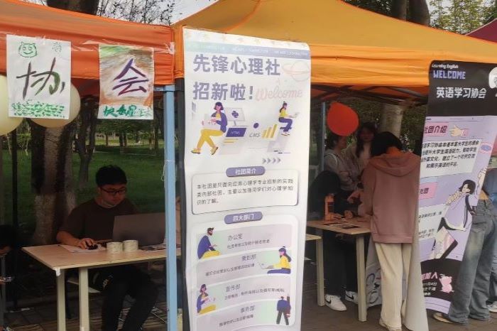 为了给级新生提供一个锻炼自我展示自我提升自我的平台同时为社团干事队伍充实优秀人才确保社团工作良性发展。由先锋心理社主办成都文理学院分社管部协办的以社团招新为主题的活动于上午时分在人工湖主干道举行。在招