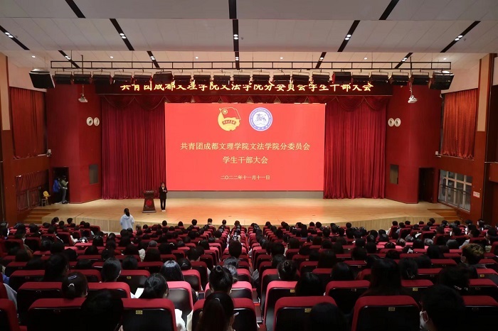 为提升学生干部综合素质和工作能力进一步发挥学生干部的模范带头作用下午时分文法学院在文理讲堂召开第十九届共青团成都文理学院文法学院分委员会学生干部见面会。分团委书记王晨静、青年媒体中心指导老师罗若梅、辅