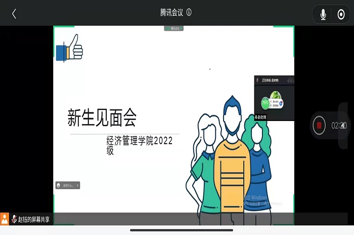 时经济管理学院党总支通过腾讯会议组织开展我的入党历程与成长收获主题分享会。经济管理学院学生第一党支部书记张琼、学生第二党支部书记赵钰出席会议李洁、陈悦、王佳、刘妍四位学生党员同志作分享级全体新生参会。