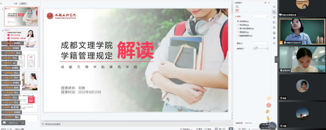 为做好新生的管理和培养根据学校关于启动级新生线上教育教学活动的通知结合疫情防控工作要求建筑学院于时开展了级新生线上开学第一课线上主题班会班会由级新生辅导员彭景老师主讲全体级学生参会。班会中彭景首先进行