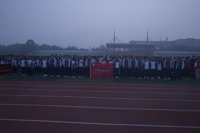 体育与医护学院在运动场举行纪念爱国运动升旗仪式党委书记高华锦、学工部副部长刘洋绪、体育与医护学院院长张培峰、党总支部书记袁久斌、学工部全体辅导员及体育与医护学院全体学生参加此次升旗仪式。升旗仪式随着国
