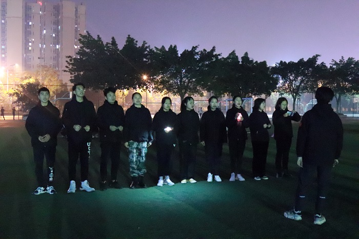 :成都文理学院国旗护卫队于操场组织开展级队员本学年度期末团建活动国旗护卫队、级学生干部及级全体队员参与本次活动。团建伊始副队长王淇瑶带领全体队员进行擒敌拳的复习热身。紧接着开始了我信任你你信任我和拼字