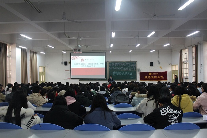 经济管理学院院学生机构在主教学楼栋教室举行学生机构期末总结大会。经济管理学院党总支书记李江、学工办主任周俊霞、学生一支部书记张琼、学生二支部书记赵钰、学生三支部书记苏燕林、学生四支部书记阮如玉、分团委