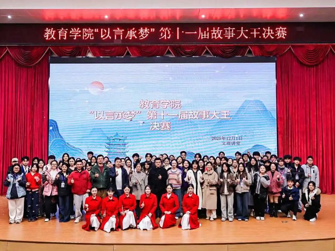 12月1日,教育学院第十一届“以言承梦”故事大王决赛在文理讲堂举办。活动邀请教育学院党委副书记兼学工办主任肖媛,音乐教育教研室主任马子杰,学前教育系乐教教师杜成鹏、舞蹈教师李青,初等教育系戏剧教师王亦凡,教育学院社团指导老师舒鑫宇,以及教育学院分团委书记毛玮、党委组织员马俐鑫、第四党支部书记陈丹丹担任评委与嘉宾。