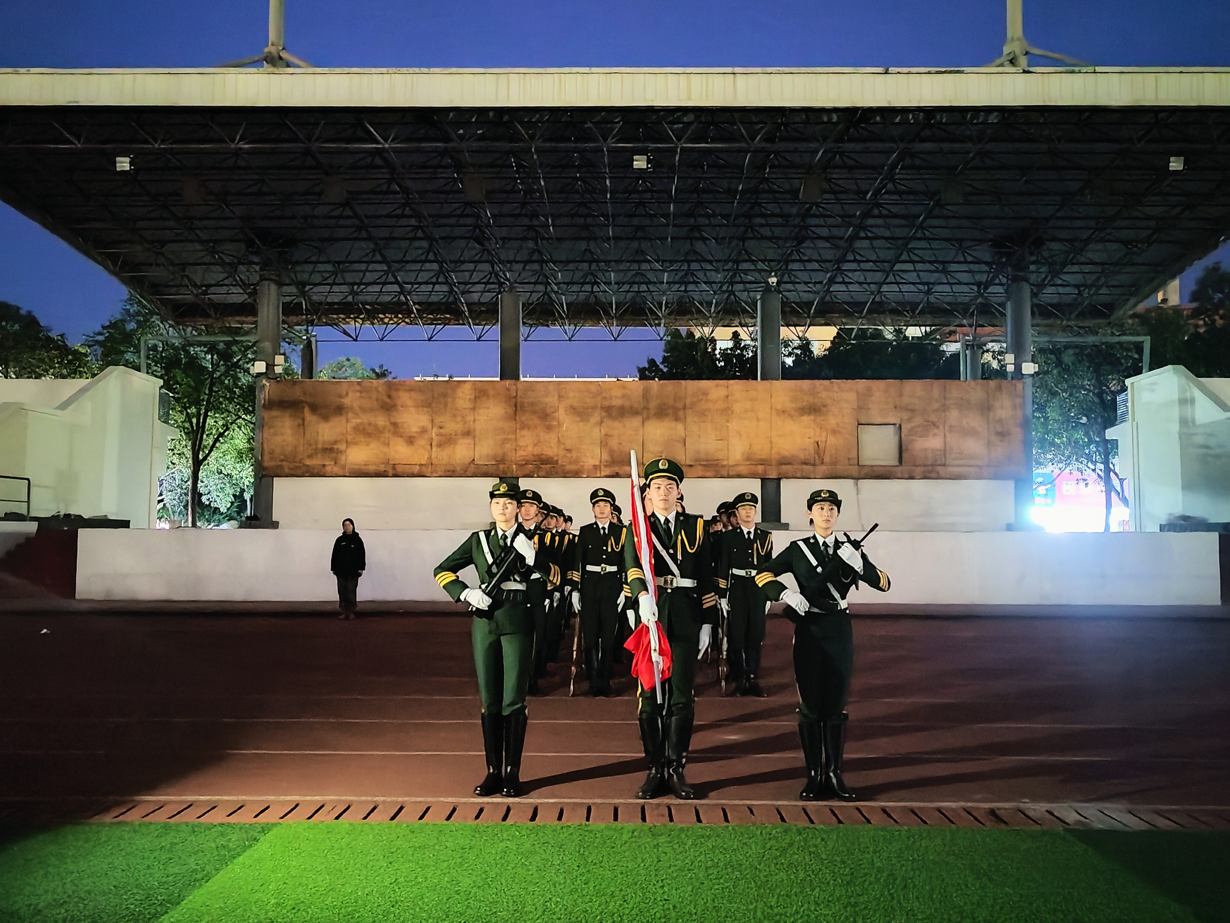 7时许,国旗护卫队队员们在操场集合完毕,等待升旗。7时20分,升旗仪式正式开始。国旗护卫队步履铿锵,踏过黎明边界,墨绿戎装与鎏金绶带在曦光中凝成一道庄严的剪影。擎旗手振臂间,五星红旗如燃烧的云霞骤然展翼,划破凝滞的晨霭。国歌声起,那道红色长河沿着旗杆庄严上溯,卷动着天光云影,将朝晖与目光一同编织进猎猎飘扬的经纬里。当旗帜在顶端迎风舒展,这场肃穆的仪式虽已落幕,但那抹跃动的鲜红却已深深烙入仰望者的血脉,成为青春记忆里永不熄灭的火焰。