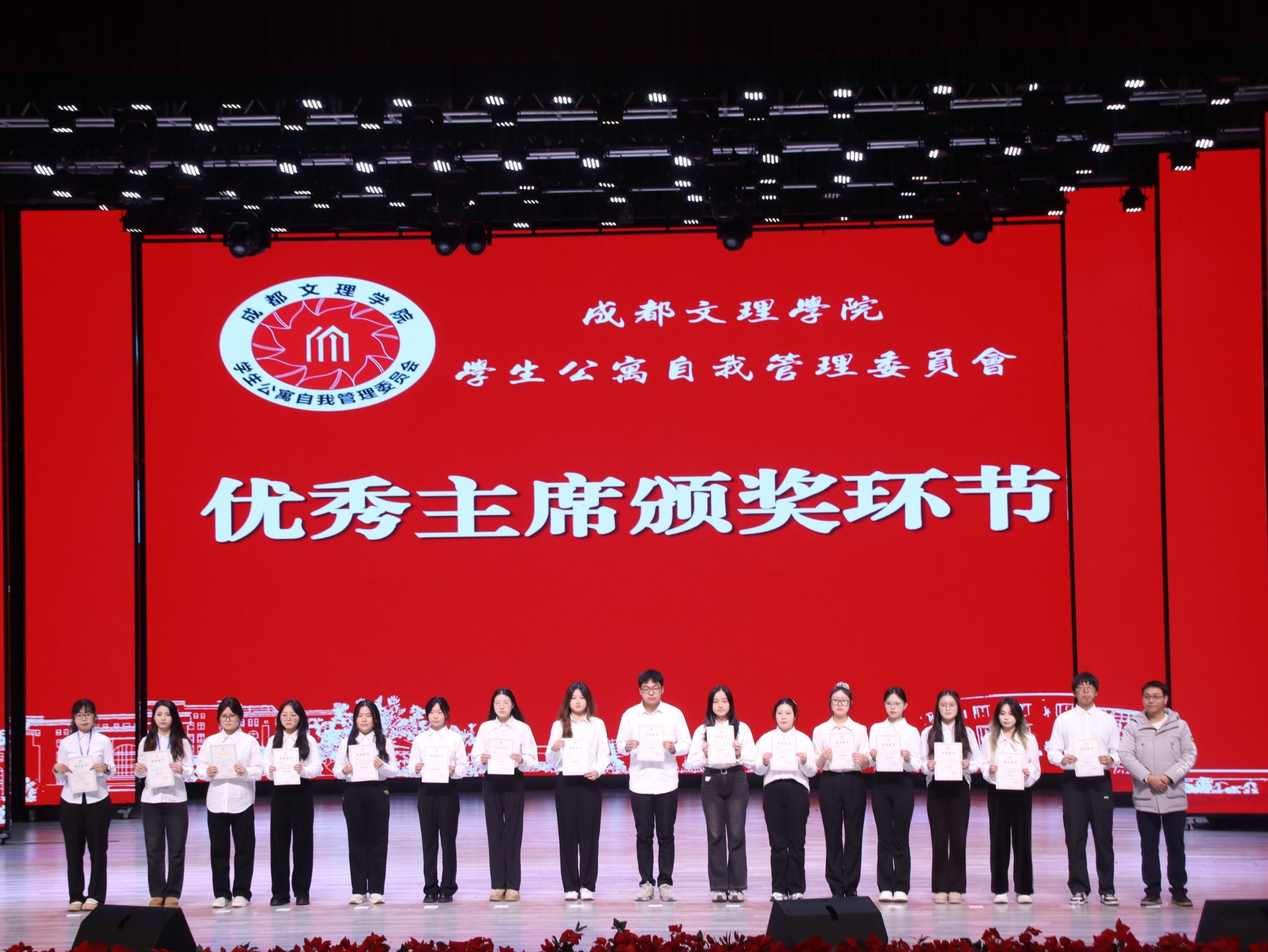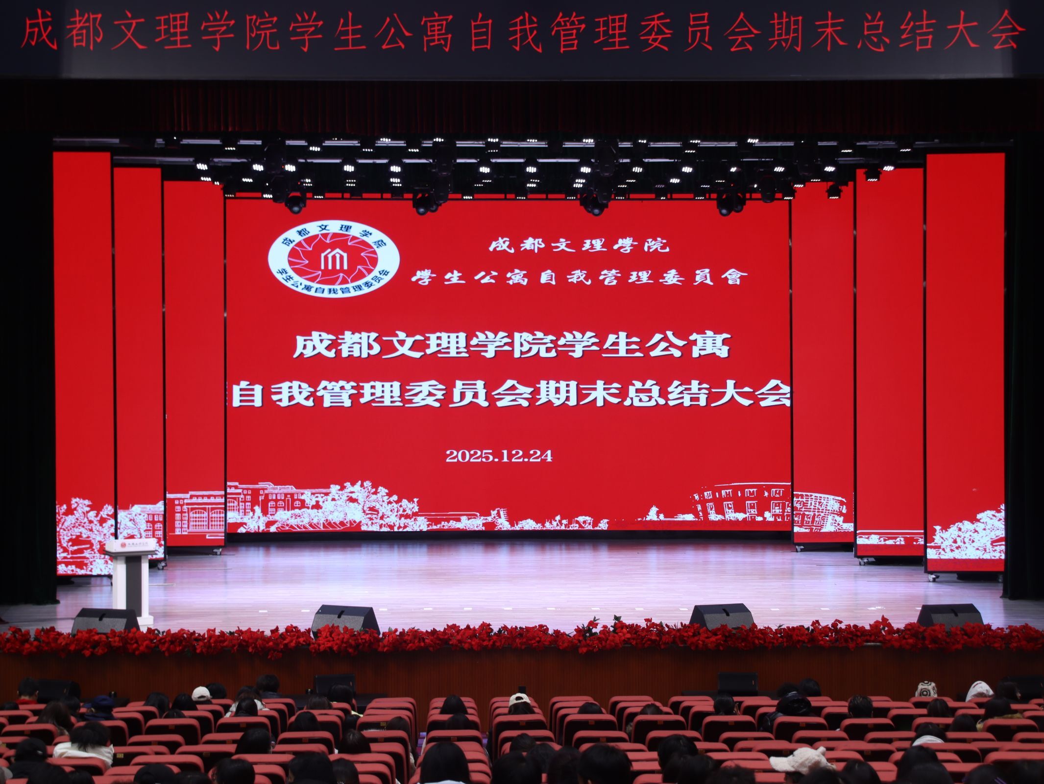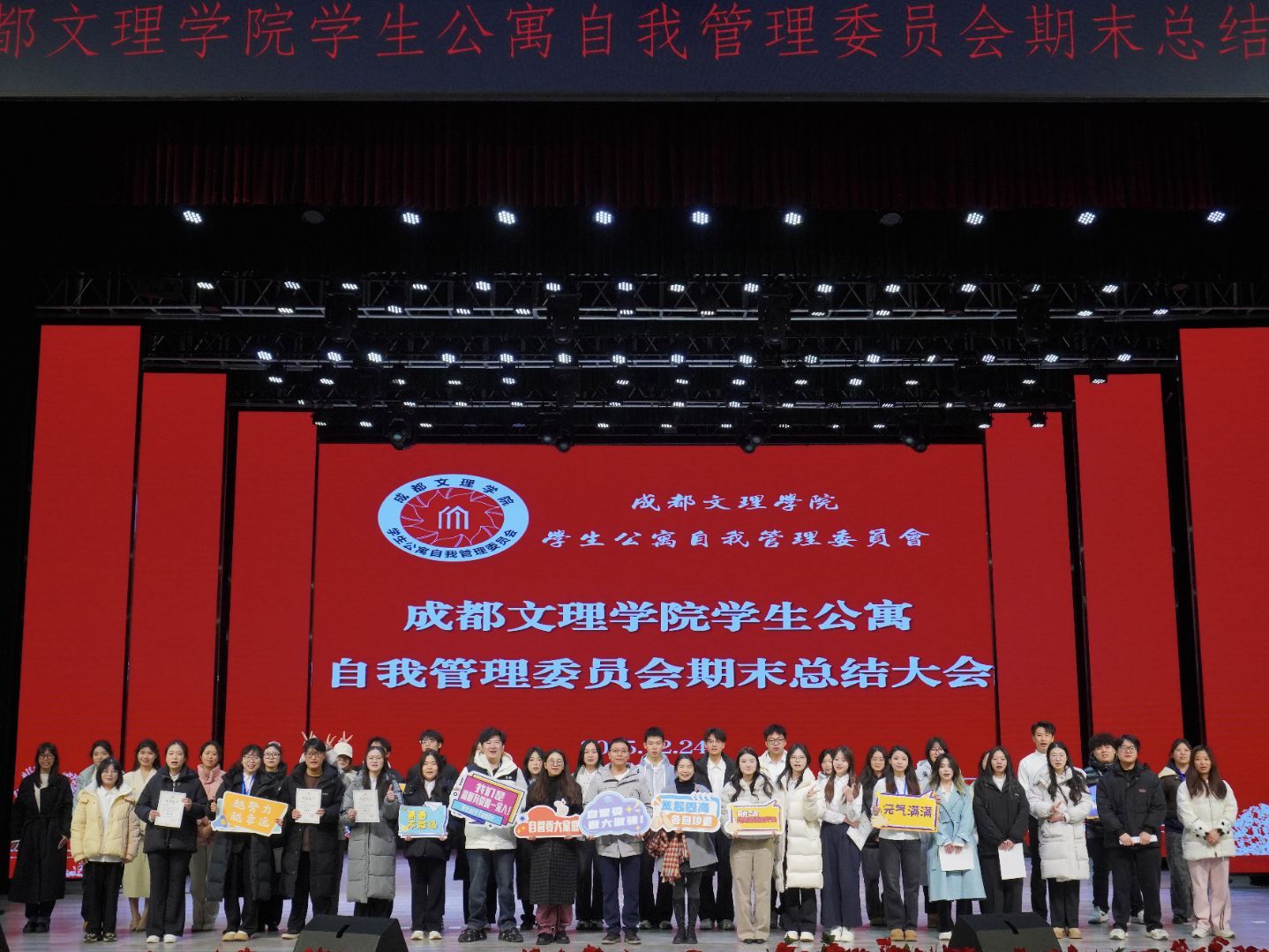 12月24日19时,学生公寓自我管理委员会总结表彰大会于星空剧场举行。学工部教师周遥遥、各学院分会指导教师、分会代表及校自管委全体成员齐聚,共同回顾工作,表彰先进,擘画未来。