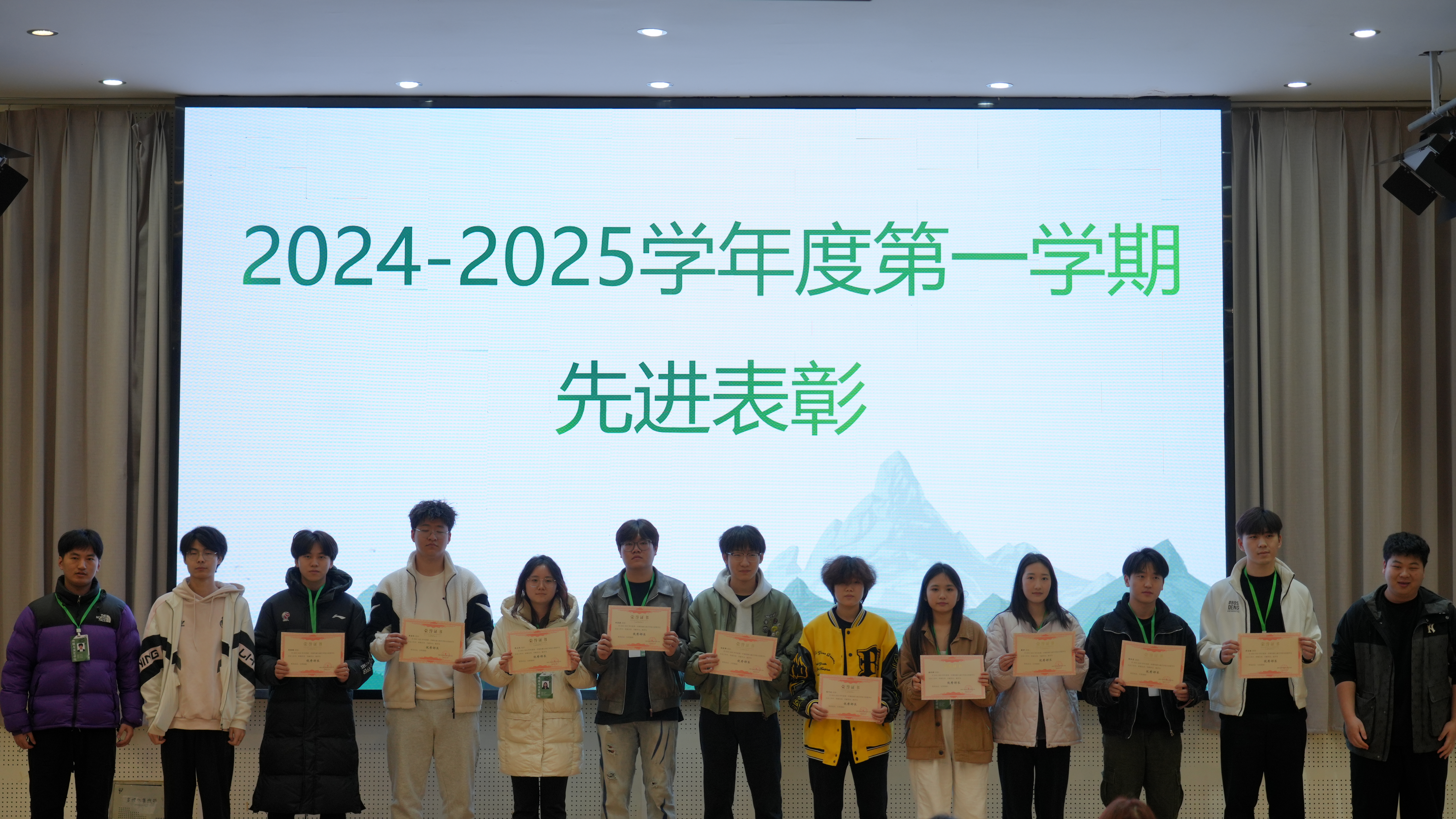 大会伊始,优秀部门——校友会的代表进行发言,与大家分享了他们在校友会工作中的宝贵经验与心得。回顾过去一学期,校友会部门精心策划和组织的各类返校活动,成功搭建起了校友与母校紧密联系的桥梁,进一步拉近了校友之间的距离。大会进行表彰环节,对在2024-2025学年第一学期表现卓越的先进个人进行了表彰,同时举行了传媒与演艺学院分团委学生分会学生干部授牌仪式。获奖干事依次上台领奖,这不仅是对他们过去努力工作的高度认可,还为全体学生干部树立了榜样,激励着更多人向着更高的目标迈进,在新学期中创造更加优异的成绩,推动学院各项工作再上新台阶。