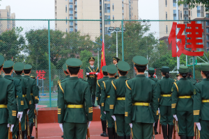 8时许,国护队员已在操场准备就绪,严阵以待。8时30分,运动会开幕式正式开始。由二十名国护队员组成的国旗、校旗、标语方阵,精神抖擞,斗志昂扬,迈着整齐的步伐走在方阵最前面,以最饱满的姿态拉开方阵汇演的序幕。待方阵入场仪式完毕,党委副书记、纪委书记、副校长王亚军介绍出席开幕式的领导。随后,升旗仪式正式开始,升国旗,奏唱国歌,升旗队列行枪礼,伴随着雄壮激昂的国歌,五星红旗在全体师生的注目下冉冉升起,迎风飘扬。