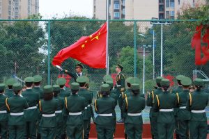 7时许,全体师生和国旗护卫队队员们在操场集合完毕,等待升旗。7时20分,升旗仪式正式开始。晨曦初破,柔光照拂。步步齐整,掷地有声,在转肘挥臂间,队员们亮出力量与节拍的完美合奏。肃穆的脸庞,笔挺的身姿,目光坚定执着,内心豪情万丈。当国歌响起了第一个悦耳的音符,五星红旗便化作一把利剑劈开那一片昏暗的天空,让彤彤旭日绽放出熠熠朝霞。至此,升旗仪式结束,全体师生有序离场。