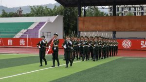 7时许,全体师生和国旗护卫队队员们在操场集合完毕,等待升旗。7时20分,升旗仪式正式开始。一声“端枪”划破长空,升旗队列队员们脚踏晨风,面朝云霄,迈着整齐的步伐走向旗台。升国旗,奏国歌,全体师生行注目礼。伴着嘹亮高亢的国歌,五星红旗冉冉升起,迎风招展。至此,升旗仪式结束,全体师生有序离场。