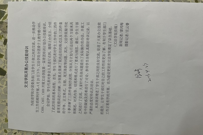 本次培训增进了学生干部之间的良好交流,促进了大家办公技能的提升,让学生干部们对自己的工作性质更加了解,有利于学生部门工作正常有序的开展,也为建设更好的文法学院奠定了队伍基础。