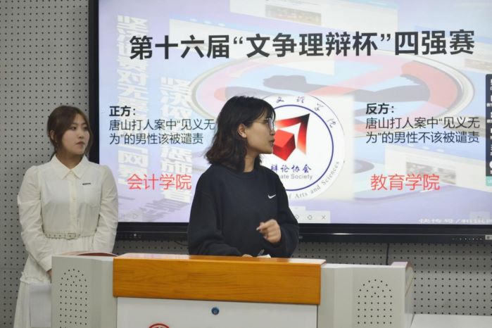经过初赛和复赛的激烈角逐,4月21日17时10分,教育学院与会计学院的同学们在主教学楼C栋101教室进行“文争理辩杯”四强赛。