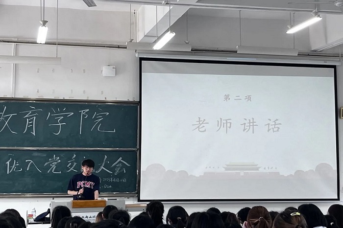 此次大会分为两个流程。大会第一项为学生党员代表苟悦进行分享。她认为同学们应该保持热爱与激情去学习各种理论知识,积累经验,不断提高自己,这样可以更好的为人民服务。每一个人应当注意自己身份的特殊性,承担相应的责任与义务,向成为一名优秀党员的方向去努力。她还提到同学们应该学习党史,加强党的思想论建,继承党的成功经验和优良传统,并从历史中吸取智慧和力量。