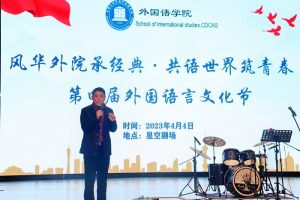 外国语学院“风华外院承经典·共语世界筑青春”第四届外国语言文化节开幕式于4月4日中午12时30分在星空剧场举行。外国语学院院长王维民、外国语学院党总支副书记苏凌函、外国语学院学工办主任徐杏、外国语学院学生一支部书记曾雪雁、外国语学院学生二支部书记罗禹、共青团外国语学院分委员会书记满达、外国语学院党总支组织员赵政以及外国语学院全体辅导员老师参加本次活动。