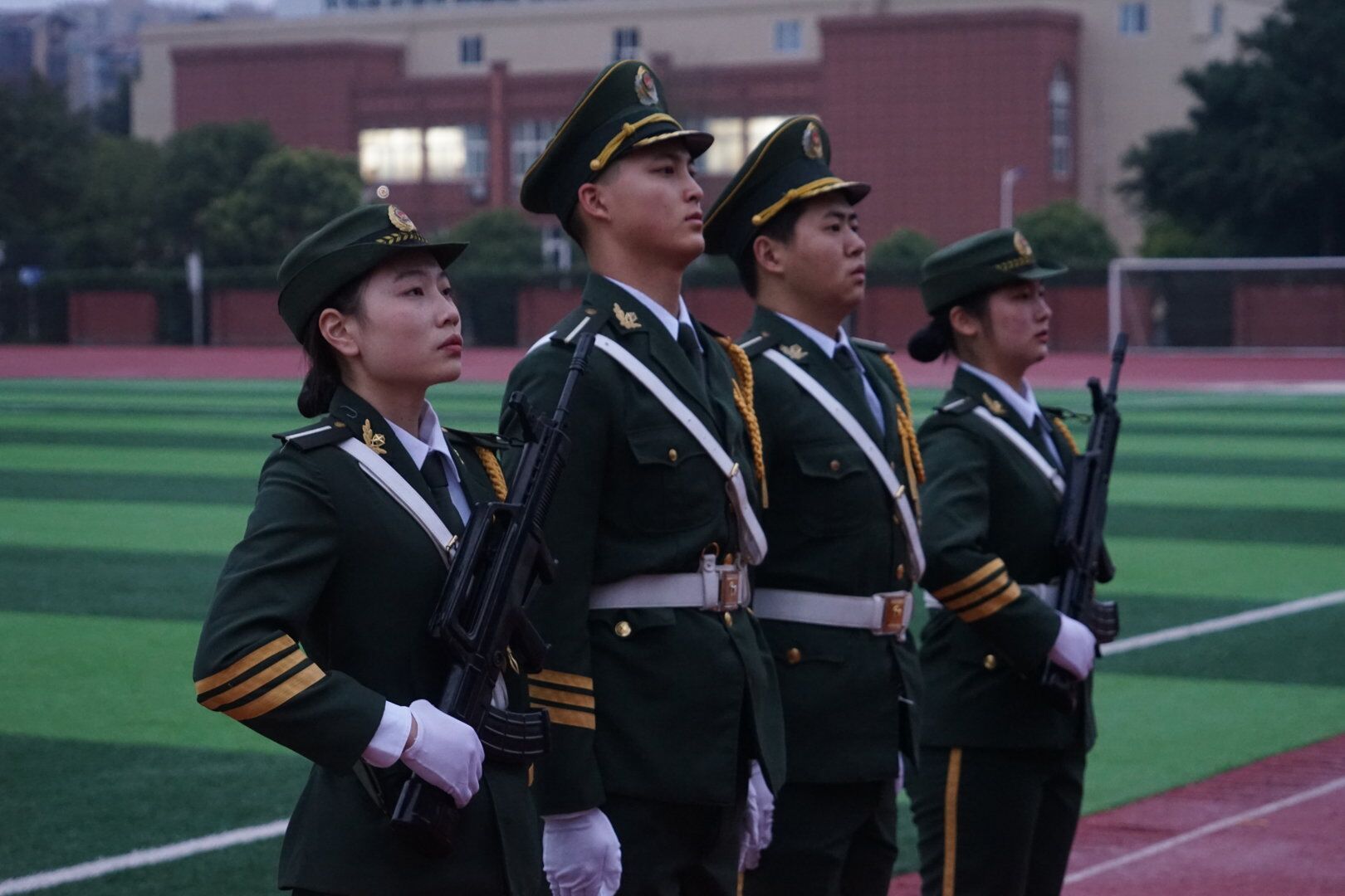 目之所及皆是国旗,心之所向皆是荣光。着戎装,握战枪,护信仰,国护用青春的朝气点燃激情的火焰,相信未来路上我们会更加辉煌。