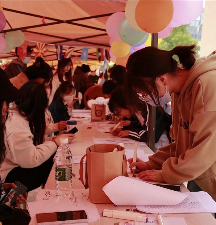 开幕式结束后,外国语学院自律委员会举办的以“守望非遗,传承文化”为主题的游园活动拉开帷幕。接着外国语学院自律委员会指导老师黄静和学工办主任徐杏查看外国语学院点位情况,参与的同学在活动地点进行非遗文化的打卡,领取卡片后进行现场投票及礼品兑换。在此次活动中,外国语学院开展的京剧知识问答和脸谱绘画两个游戏激发了同学们的浓厚兴趣,同学们踊跃参与活动,为外院积极投票。通过这样的方式,同学们不仅懂得创建更有意蕴的寝室文化,也提高了对非遗文化的了解。