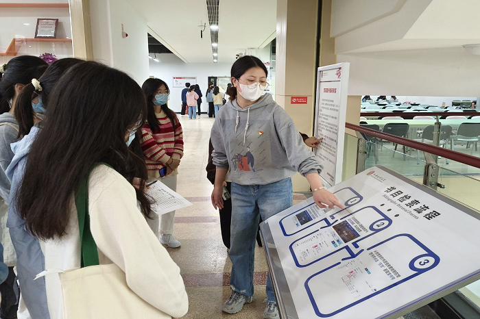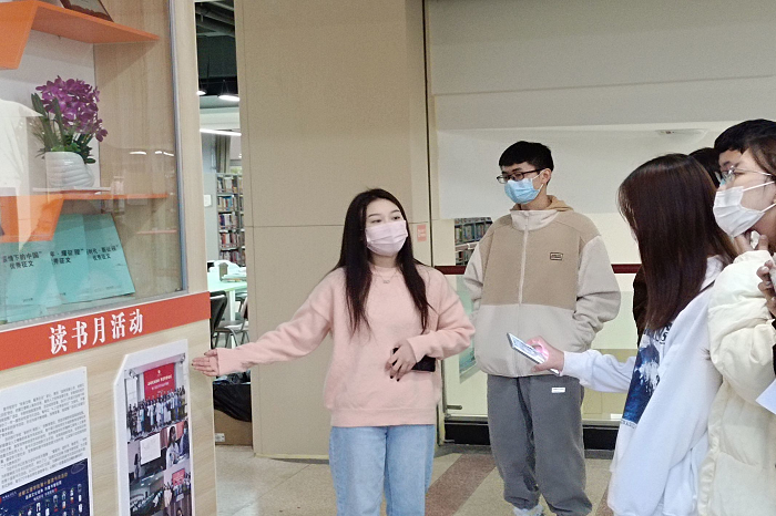 参与游馆的同学认真听讲解,积极发问并参与有奖互动。希望通过讲解员的讲解,能吸引更多同学了解图书馆、走进图书馆,构建书香校园。