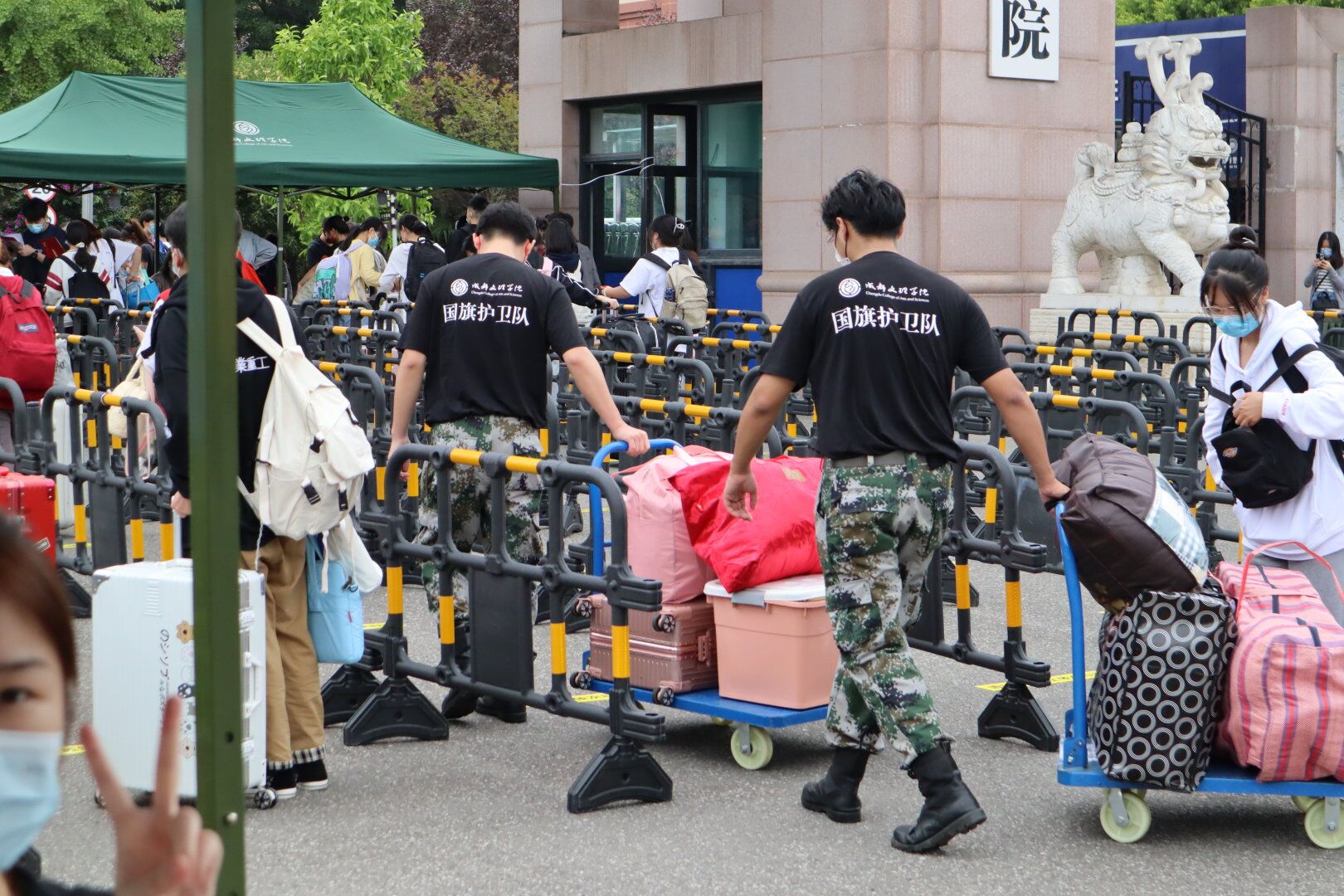 上午7点,国护志愿者于学校门口集合完毕,准备各项迎新事宜。8点整,新生报到正式开始。在为期两天的迎新工作中,国护队员们帮助新生搬运行李,扫描身份码,认真维持进校秩序,积极引导新生入校,为前来报到的新生及家长解决各类问题;同时也配合各学院和其他部门志愿者做好迎新工作。