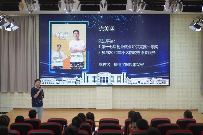 会上,由四名学生代表围绕专升本、征兵入伍、专业实践、学生创新创业板块进行讲述。许洋铭结合去年专升本备考和竞赛经历,告诉在场同学要将理论学习同专业实践相结合,不断总结、积累经验,树立奋斗目标;陈美涵谈到个人军旅生活,向同学们普及征兵入伍的知识,号召同学们积极投身志愿服务活动,磨练个人意志,实现人生价值。郭虎分享在校专业培训和外出实践经历,鼓励大家珍惜机会、敢于选择,提升个人就业竞争力。曹琨结合大学创业历程,鼓励同学们正视迷茫,利用大学时光广泛涉猎自己感兴趣的领域,不为自己设限,保持对生活的热爱。