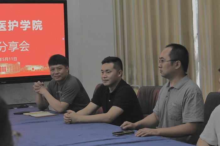 体育与医护学院于5月11日下午15时30分在体育馆105办公室召开校友分享会,会议由学院党总支书记刘刚主持,学院邀请到2014级优秀校友吴祥回到母校分享交流经验,体育专业课教研室主任邓晓明、学生工作办公室主任周晓丹、部分专职教师、辅导员以及各年级学生代表参加了会议。