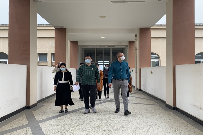 李江一行人深入教学一线,对行政楼、实验楼、第三教学楼各教室的教学情况进行了实时检查:检查任课教师到岗和学生出勤情况,检查师生是否按照疫情防控要求佩戴口罩以及查看教学场地环境和设备使用状况。