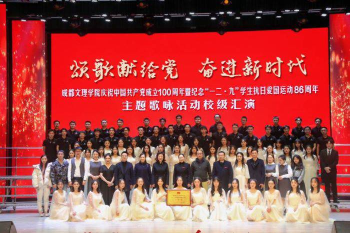 12月8日下午,为庆祝中国共产党建党100周年暨纪念“一二·九”学生抗日爱国运动86周年主题歌咏活动于我校星空剧场举行。成都文理学院董事长刘学民、校长喻洪麟、党委书记高华锦、常务副校长童精明、副校长杨莉、党委副书记王亚军、副校长陈刚,校长助理张昊出席参加,各二级学院党政领导,各职能部门负责人以及师生代表参加活动。
