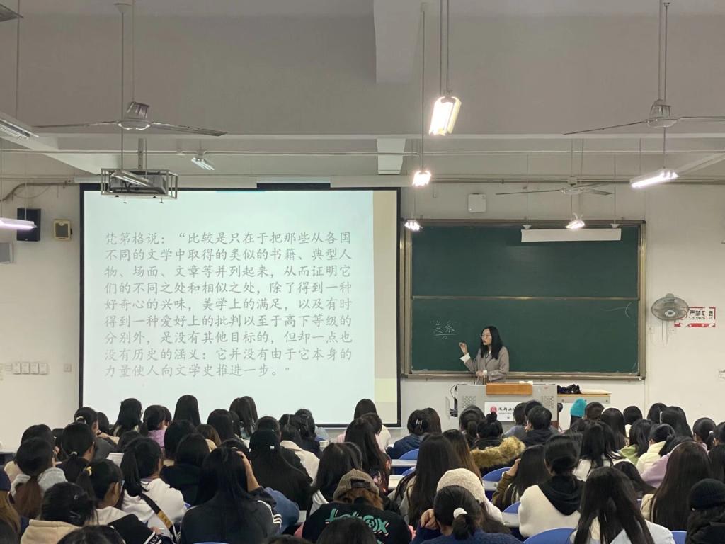 10月28日下午19时,文法学院于主教学楼B114教室开展“浅谈比较文学中的‘形象学’研究” 主题讲座。本次讲座由谢荣萍讲师担任主讲人,各年级学生踊跃参加本次讲座。